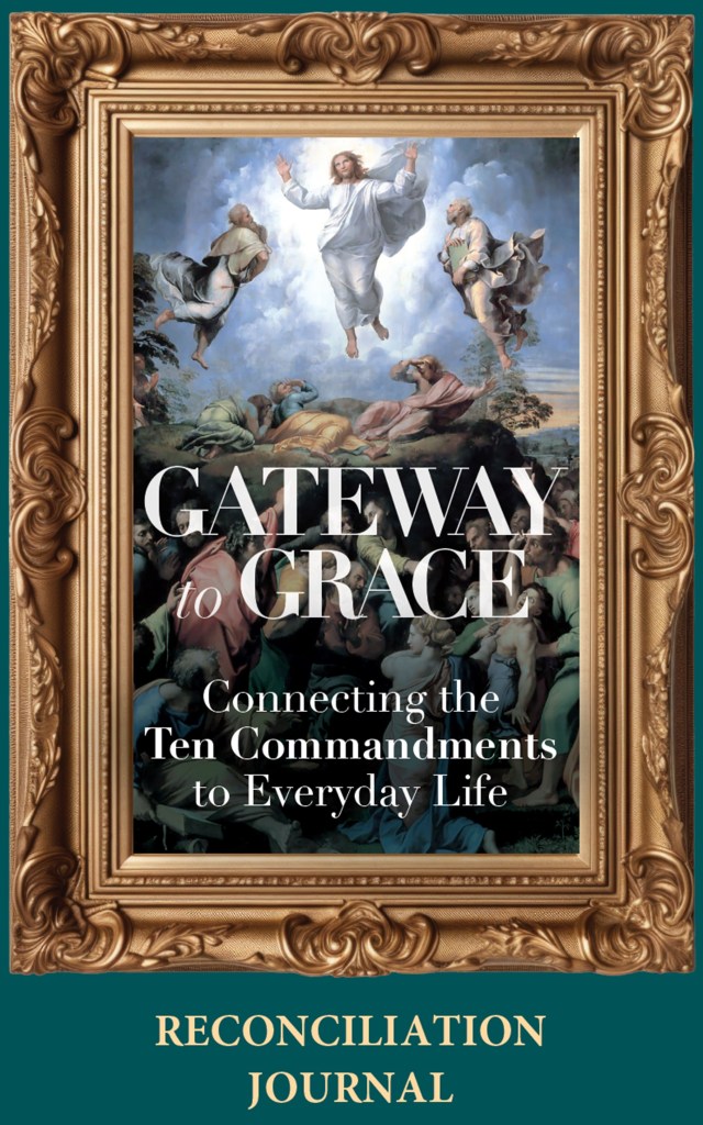 A companion Reconciliation Journal for Gateway to Grace, Connecting the Ten Commandments to Everyday Life. It contains a note from the author, How to Make a Confession, Reflection Questions, Examination of Conscience, and lined pages for journaling.